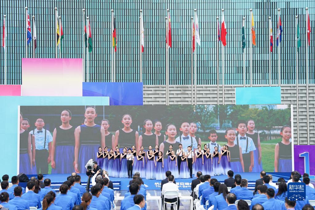 9月16日,小演員們在儀式上合唱杭州亞運會(huì )主題歌曲《同愛(ài)同在》。