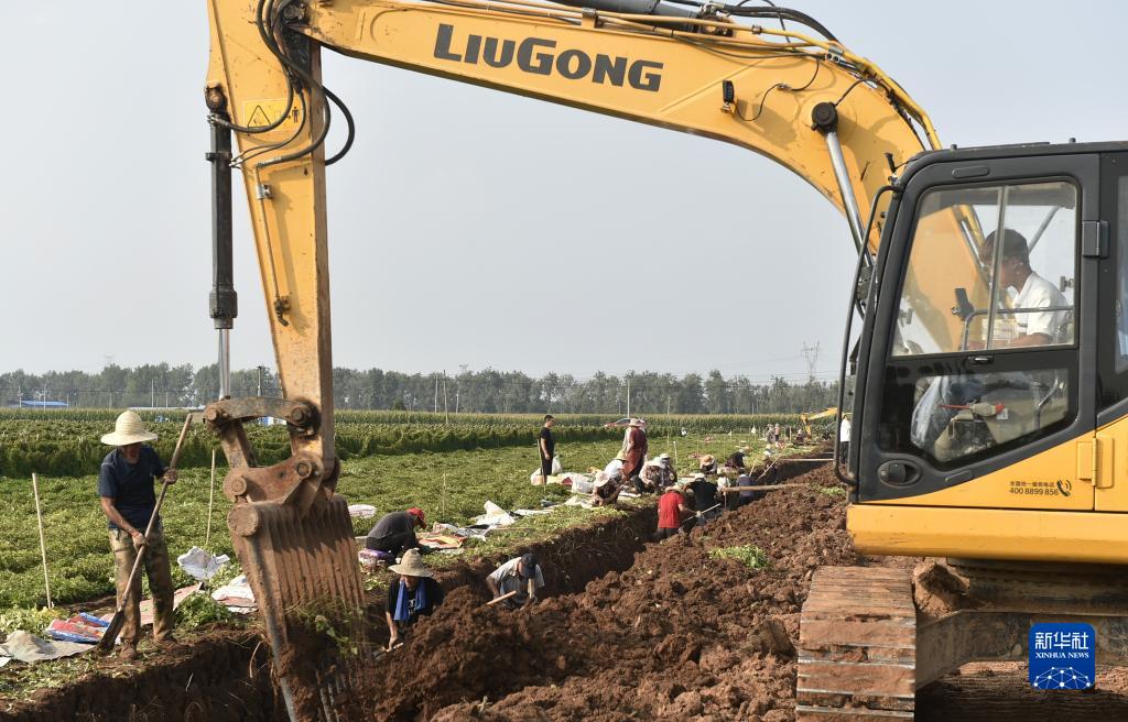 9月15日,河南省焦作市溫縣黃莊鎮米莊村農民在田間收獲鐵棍山藥。