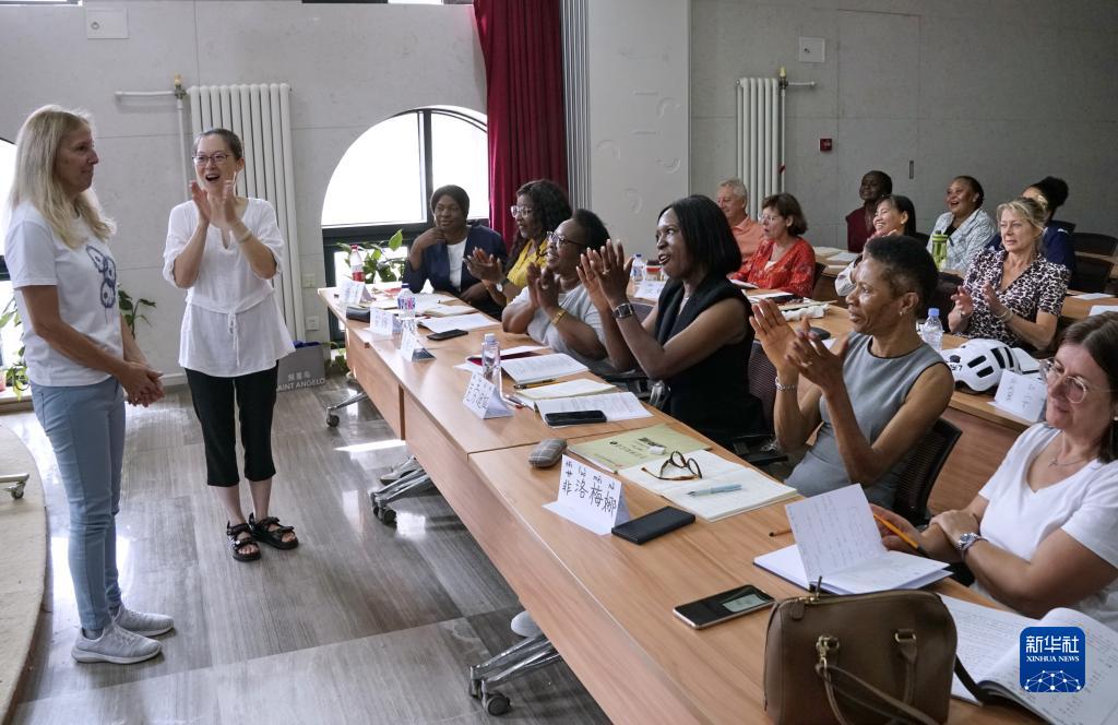 外籍居民在北京市朝陽(yáng)區麥子店街道的社區新時(shí)代文明實(shí)踐所參加漢語(yǔ)培訓班(9月11日攝)。