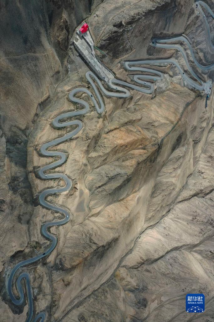 在新疆塔什庫爾干塔吉克自治縣,游客駕車(chē)穿行在“盤(pán)龍古道”景區(8月27日攝,無(wú)人機照片)。