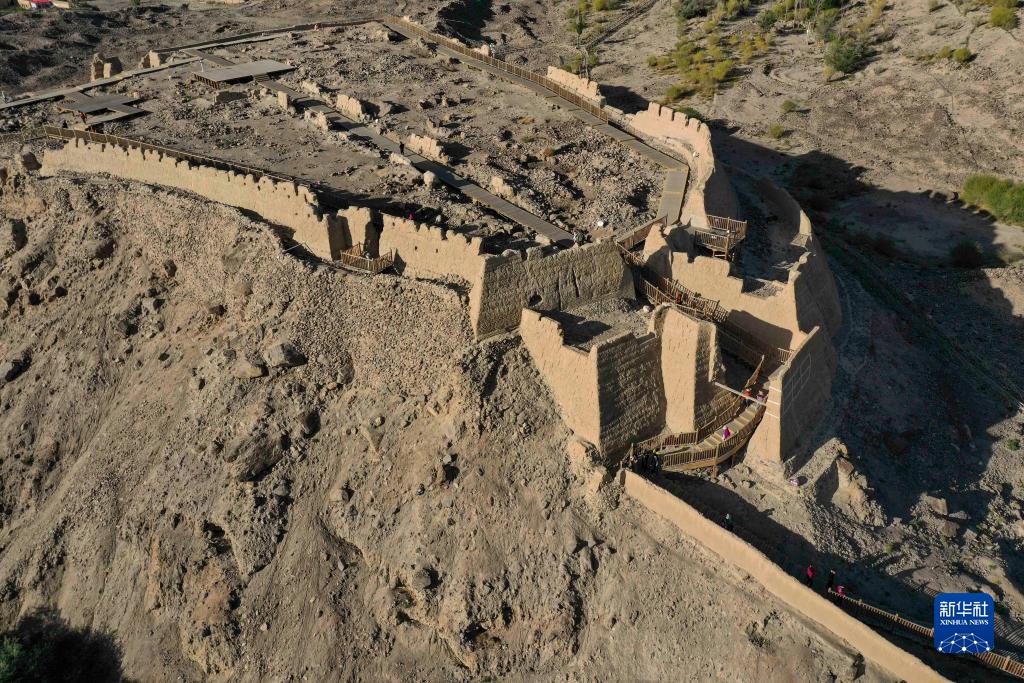 游客在新疆塔什庫爾干塔吉克自治縣石頭城遺址游玩(8月28日攝,無(wú)人機照片)。