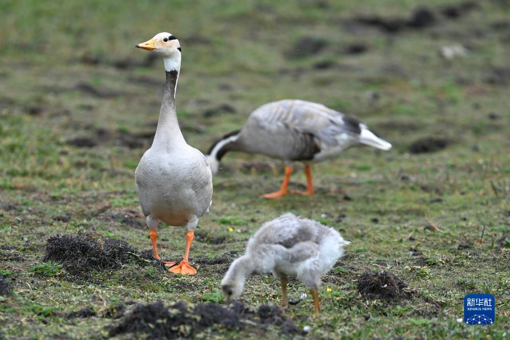 這是在甘肅尕海則岔國家級自然保護區的尕海濕地上拍攝的斑頭雁(7月7日攝)。