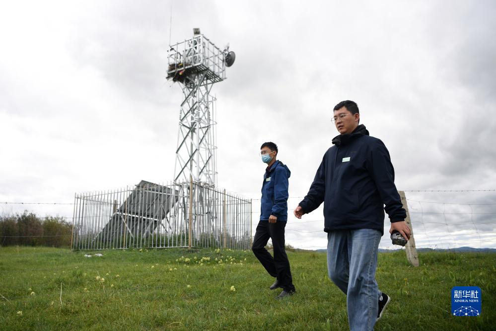 甘肅黃河首曲國家級自然保護區管護中心曼日瑪保護站工作人員王佳陽(yáng)(右)和同事在保護區內巡護(7月5日攝)。
