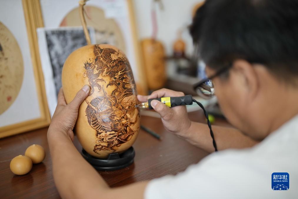 9月16日,烙畫(huà)藝人在玉田縣“非遺會(huì )客廳”工作室內制作烙畫(huà)。
