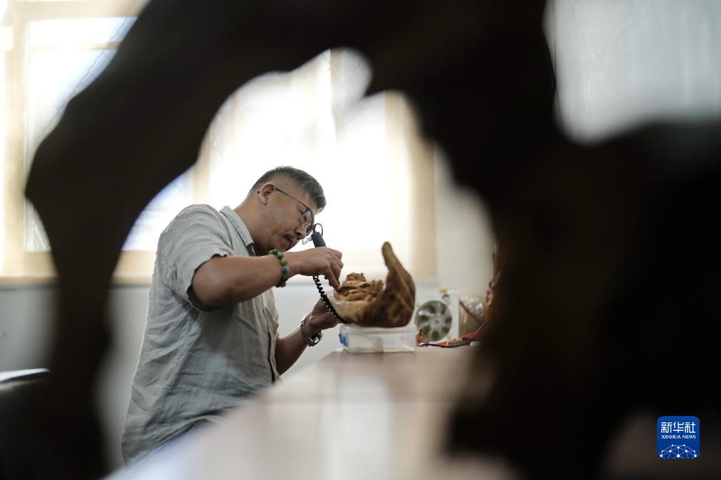 9月16日,玉田木雕藝人在玉田縣“非遺會(huì )客廳”工作室內制作木雕。