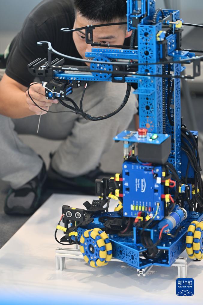 9月16日,選手參加移動(dòng)機器人項目比賽。