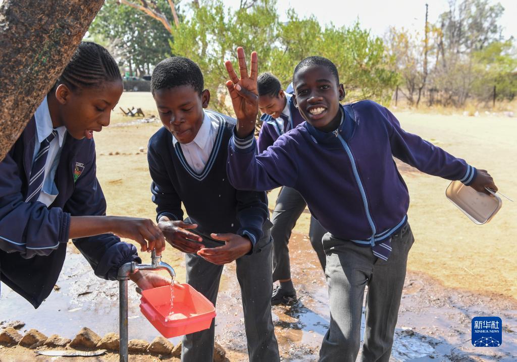 9月12日,在博茨瓦納馬哈拉佩的一所公立學(xué)校,學(xué)生在洗餐具。