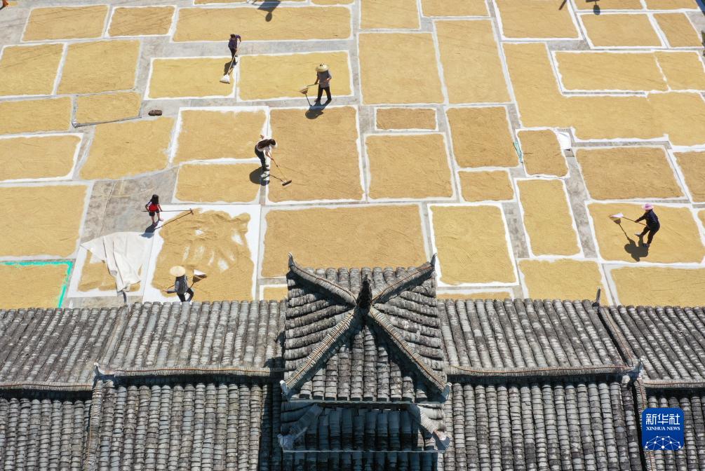 金秋時(shí)節,各地農民抓住晴好天氣晾曬收獲的高粱、水稻、玉米等糧食作物,呈現多彩的豐收圖景。