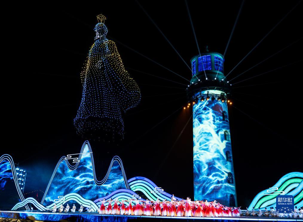 9月16日拍攝的第十四屆中國長(cháng)江三峽國際旅游節開(kāi)幕式無(wú)人機表演。