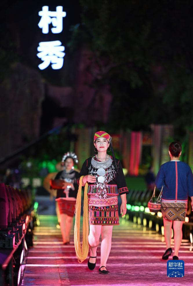 當日,海南省五指山市民族時(shí)裝“村秀”系列文化活動(dòng)開(kāi)幕。鄉鎮居民身著(zhù)黎族、苗族傳統和創(chuàng )新設計服飾,向人們展示民族傳統文化的魅力。