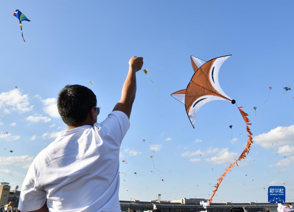 當日,德國柏林舉行2023年巨型風(fēng)箏節?,F場(chǎng)放飛了章魚(yú)、青蛙、金魚(yú)、小熊等造型的巨型風(fēng)箏,還吸引眾多市民前來(lái)放風(fēng)箏。