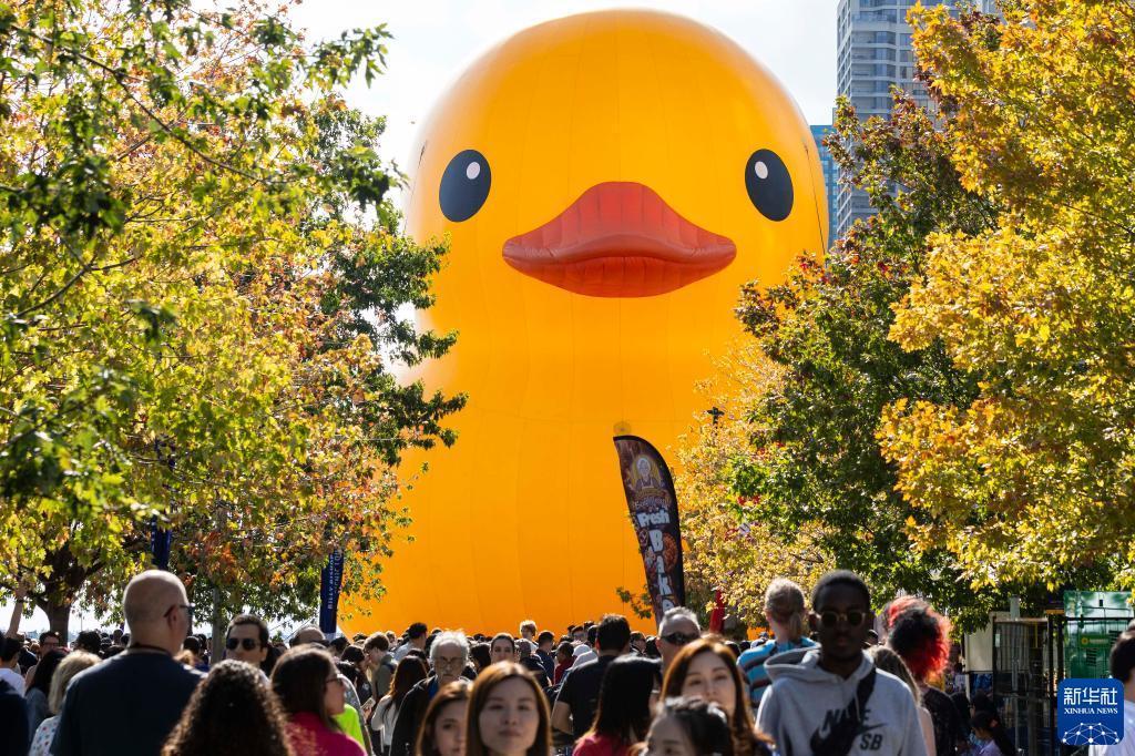 當日,一只6層高、重約13.6噸(30000磅)的橡皮“大黃鴨”亮相多倫多,吸引了眾多游人。這是“大黃鴨”繼2017年后再次來(lái)到多倫多,從9月16日至17日向公眾開(kāi)放。