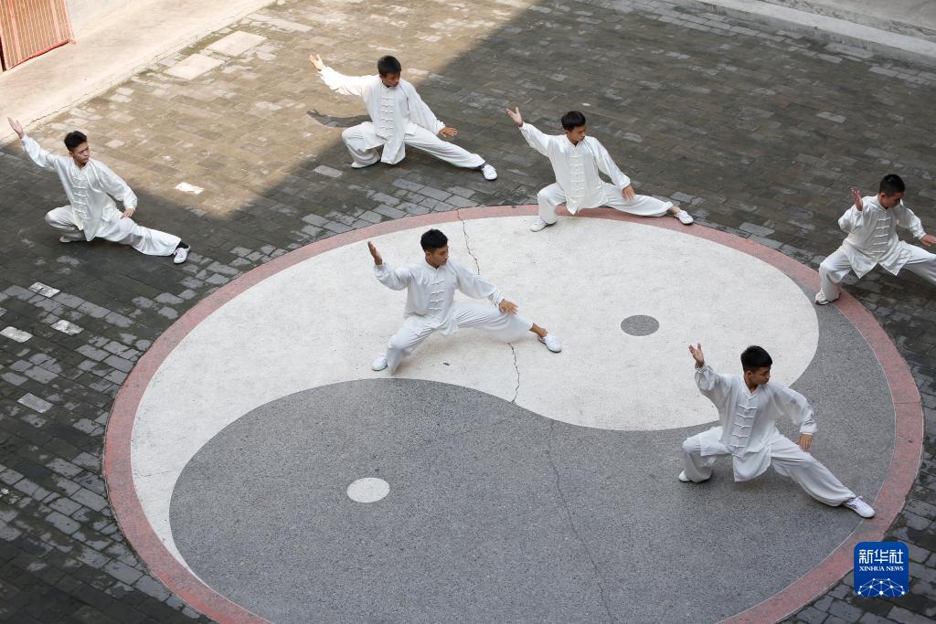 9月15日,河南溫縣陳家溝一家武術(shù)學(xué)校的學(xué)員在練習太極拳。