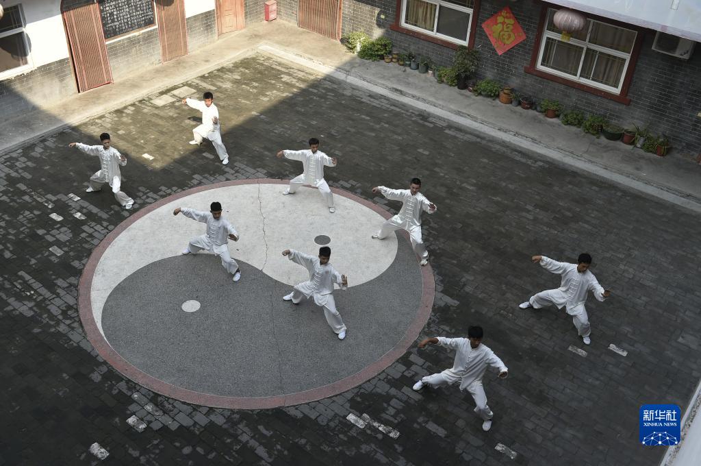 9月15日,河南溫縣陳家溝一家武術(shù)學(xué)校的學(xué)員在練習太極拳。