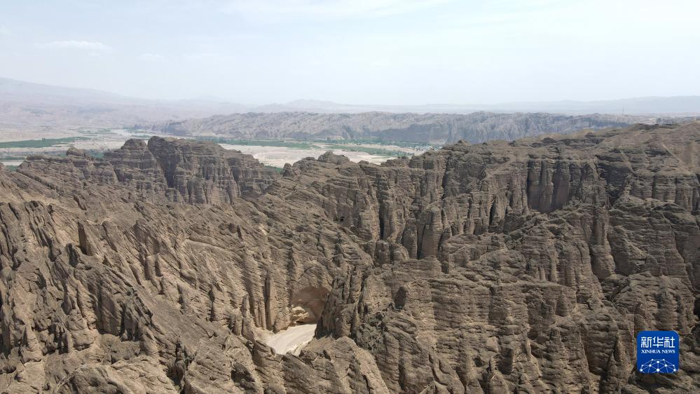這是位于甘肅省白銀市景泰縣中泉鎮龍灣村的黃河石林景觀(guān)。黃河石林千峰競奇、峽谷蜿蜒,與黃河遙相呼應,形成山環(huán)水轉、動(dòng)靜結合的自然奇觀(guān)(7月11日攝,無(wú)人機照片)。