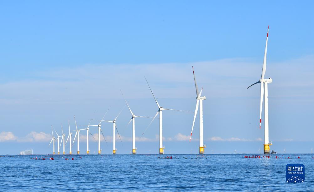 9月13日拍攝的大連莊河海上風(fēng)電項目。目前,大連莊河已建成海上風(fēng)電項目4個(gè),裝機容量105萬(wàn)千瓦。