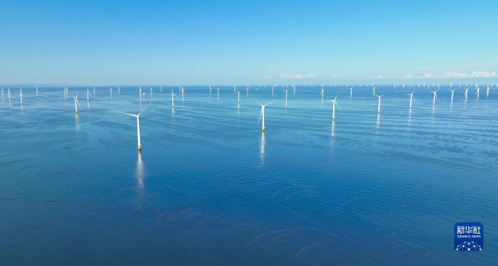 9月13日拍攝的大連莊河海上風(fēng)電項目。目前,大連莊河已建成海上風(fēng)電項目4個(gè),裝機容量105萬(wàn)千瓦。