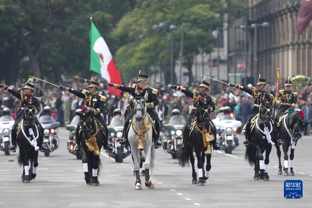當日,墨西哥在首都墨西哥城的憲法廣場(chǎng)舉行閱兵式,慶祝獨立213周年紀念日。