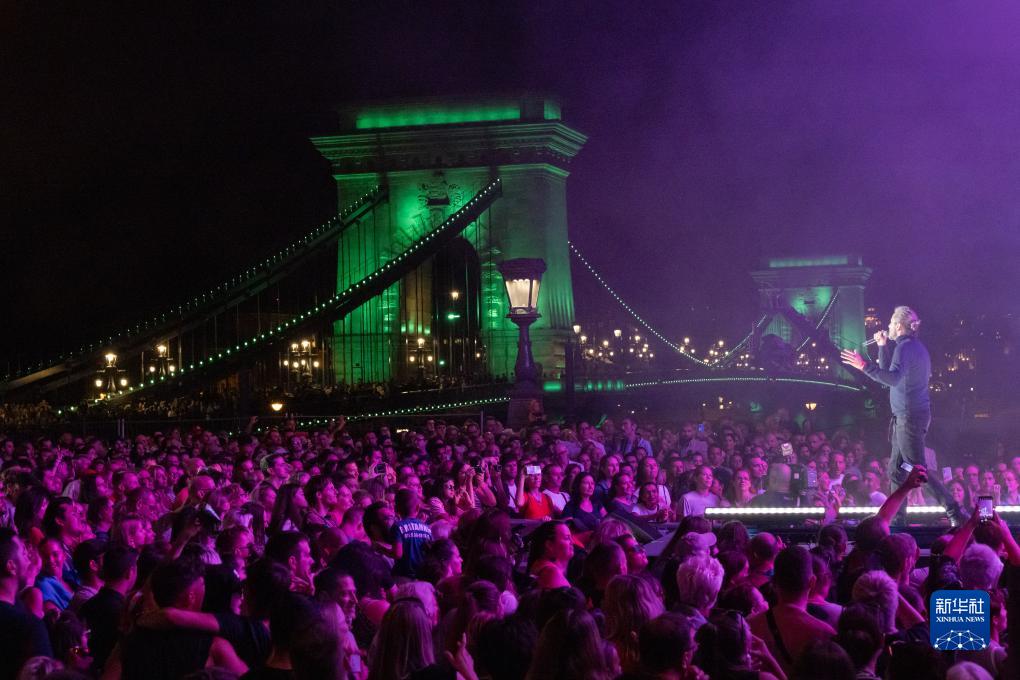 9月16日,人們在匈牙利首都布達佩斯著(zhù)名地標鏈子橋畔欣賞音樂(lè )會(huì )。
