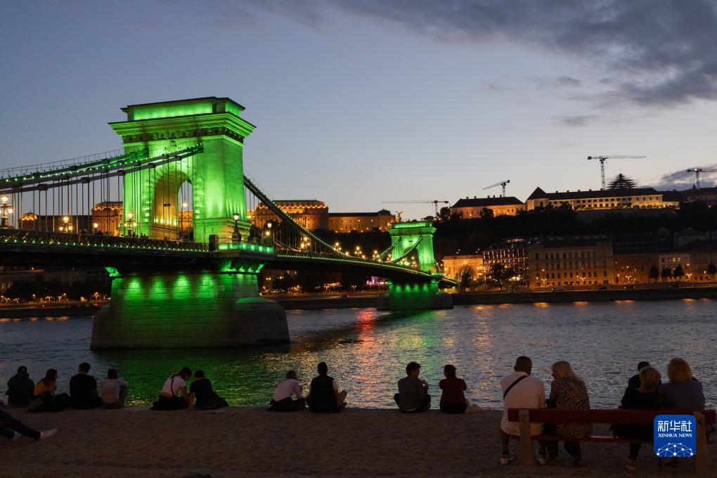 9月16日,人們在匈牙利首都布達佩斯著(zhù)名地標鏈子橋畔欣賞夜色。