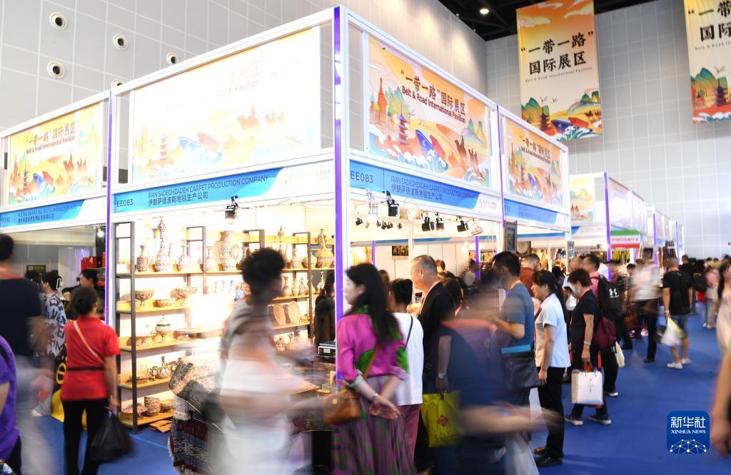 9月17日,在南寧國際會(huì )展中心,外國觀(guān)眾在東博會(huì )“一帶一路”國際展區選購商品。