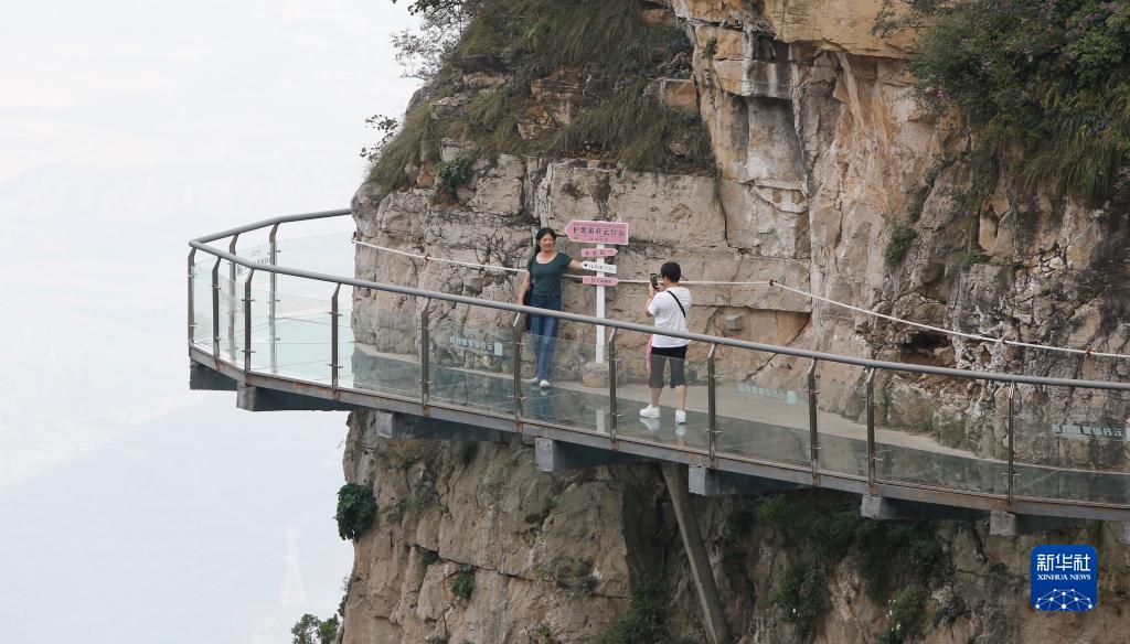 9月17日,游人在云臺山景區內游覽。