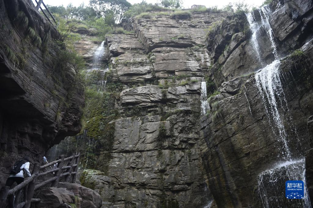 9月17日,游人在云臺山景區的紅石峽游覽。