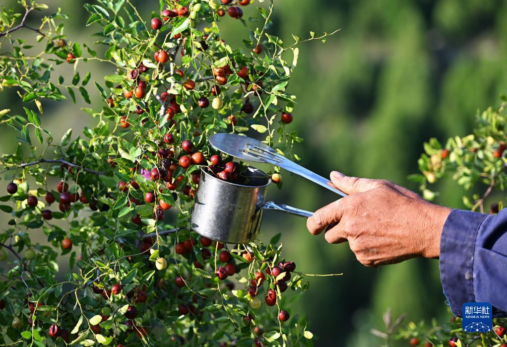 9月18日,唐山市豐潤區火石營(yíng)鎮東高莊村的農民采摘酸棗。