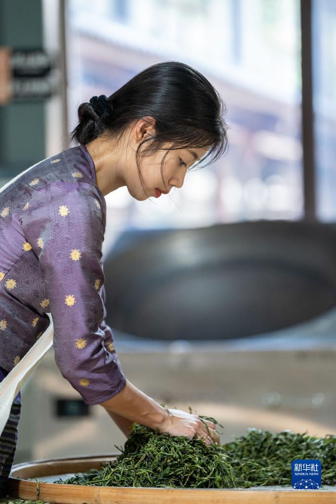在景邁山布朗公主茶廠(chǎng),傣族姑娘葉香在給茶葉殺青(9月15日攝)。