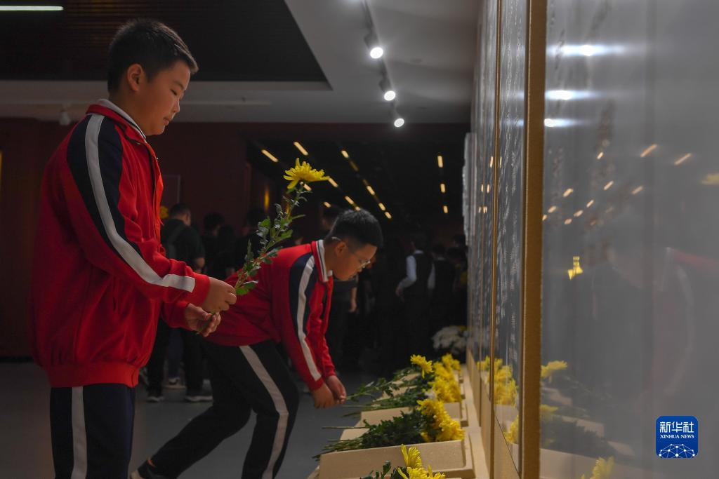 9月18日,在東北淪陷史陳列館,小學(xué)生向革命先烈敬獻鮮花。