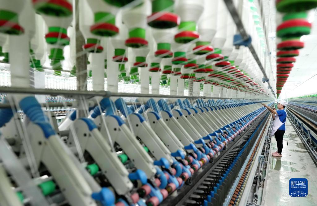 9月19日,工人在晉州市一家紡織企業(yè)的生產(chǎn)車(chē)間工作。