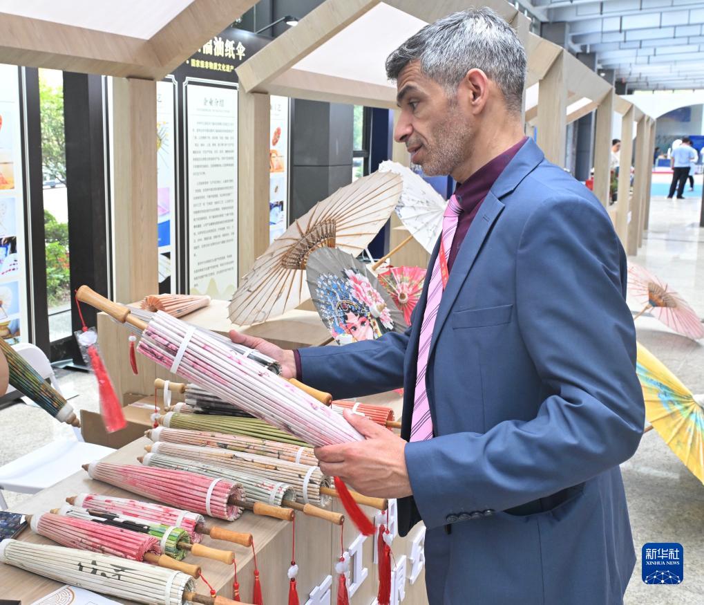 9月19日,一名嘉賓在了解挑選瀘州油紙傘。