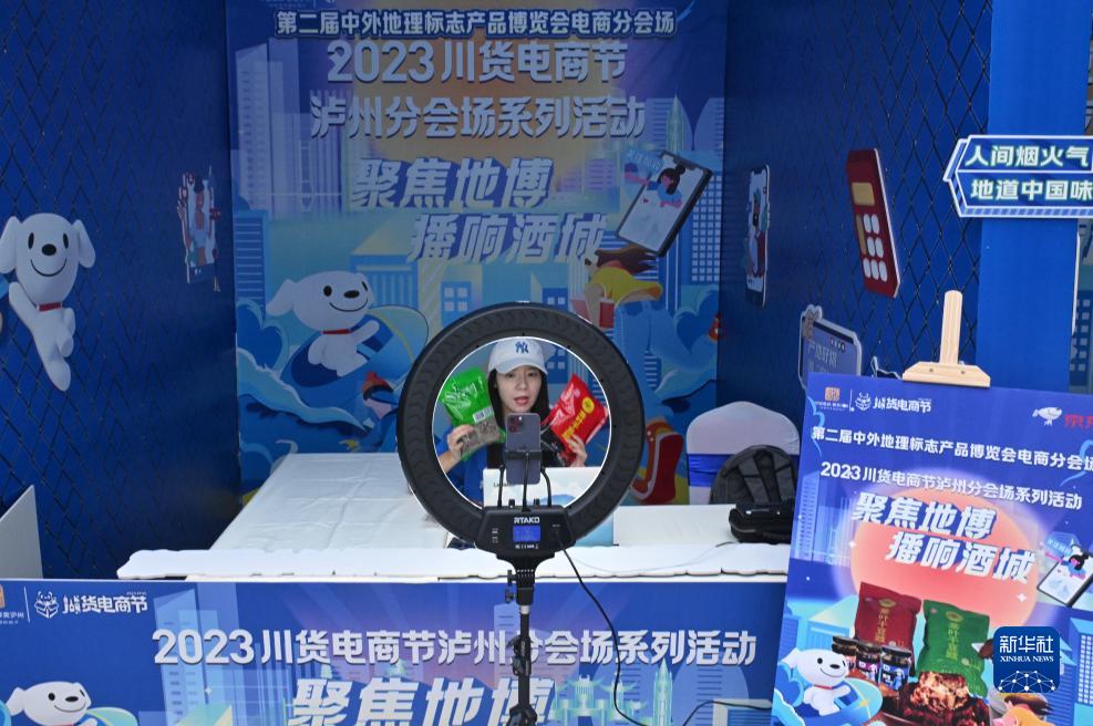 9月19日,參展商在博覽會(huì )現場(chǎng)直播推廣產(chǎn)品。