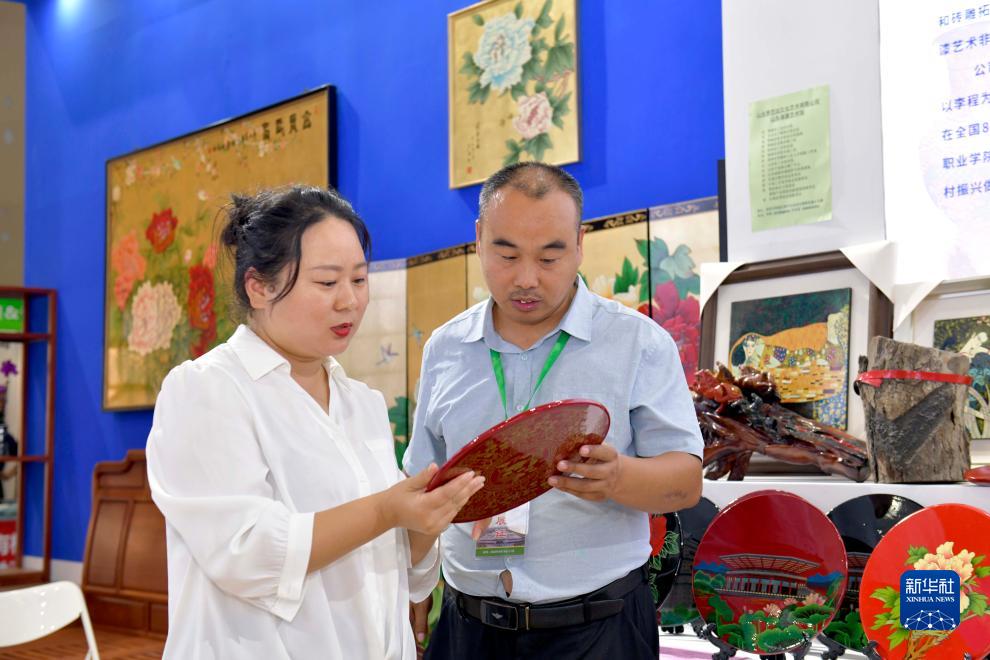 9月19日,在菏澤國際會(huì )展中心,觀(guān)眾在了解漆器產(chǎn)品。