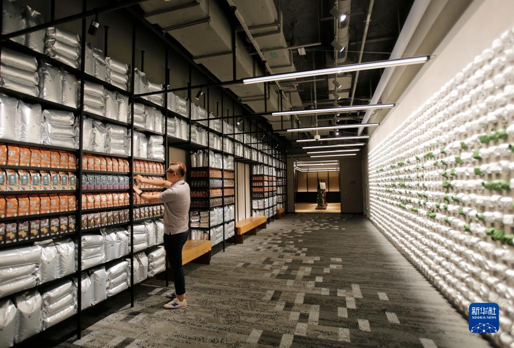 9月18日,在江蘇昆山的星巴克中國咖啡創(chuàng )新產(chǎn)業(yè)園,工作人員在整理咖啡豆陳列架。