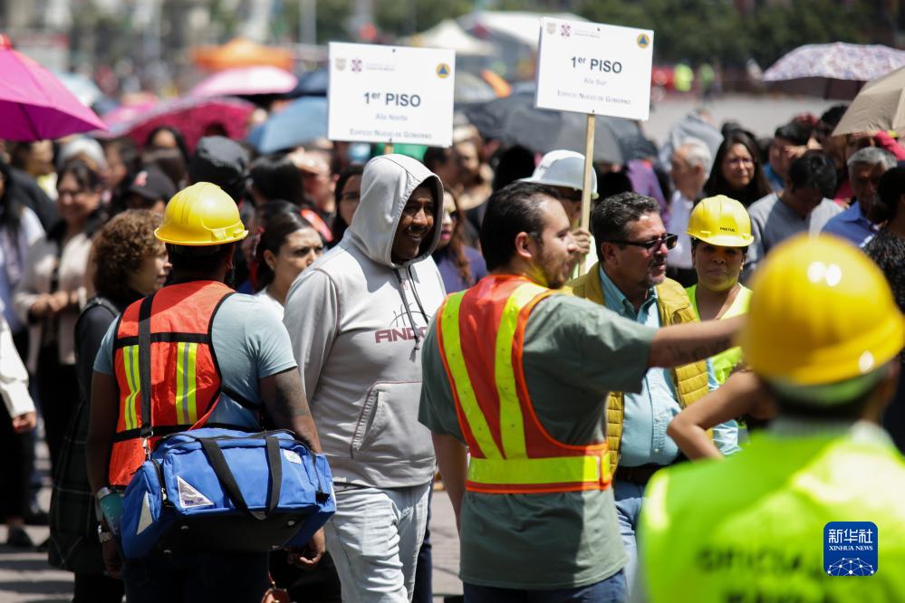 9月19日,人們在墨西哥首都墨西哥城參加地震演習。