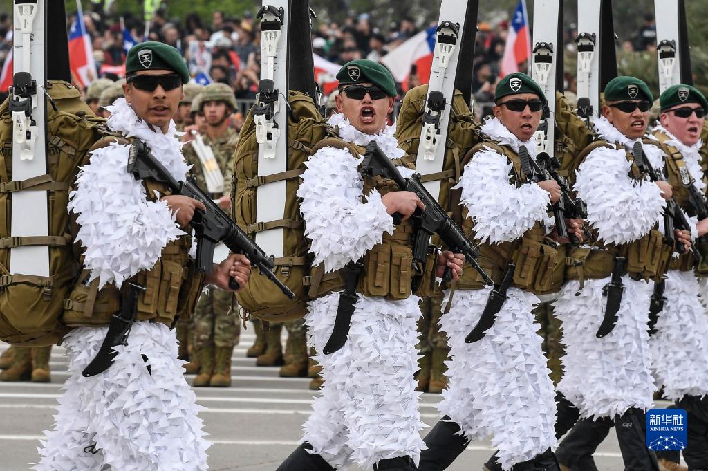 當日,一年一度的智利陸軍節閱兵式在首都圣地亞哥奧伊金斯公園舉行。智利陸??杖姾途觳筷?700多人參加了閱兵式。