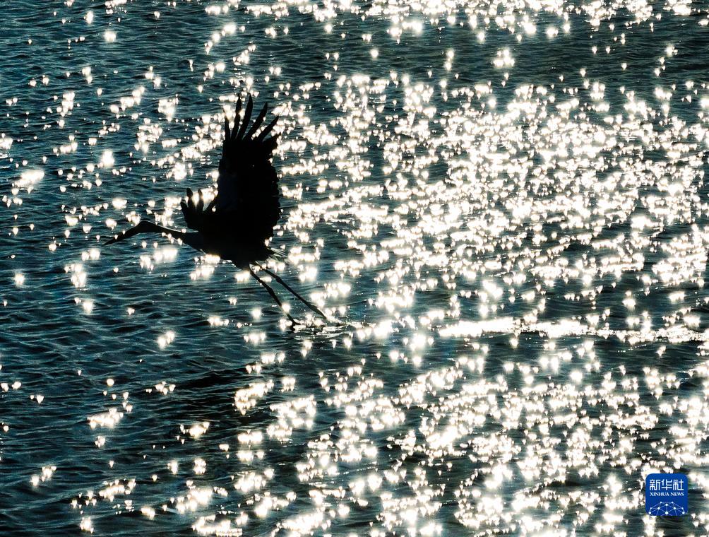 在東臺條子泥濕地拍攝的東方白鸛(9月1日攝,無(wú)人機照片)。