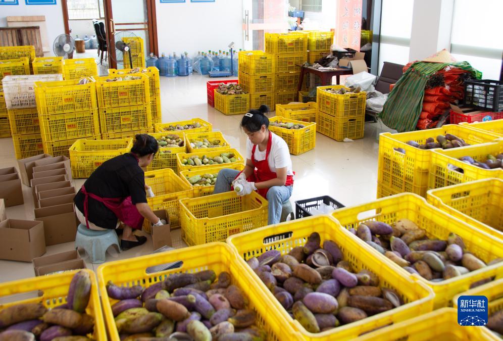 9月20日,湖南省永州市藍山縣縣城一食品科技公司,公司員工打包八月瓜。