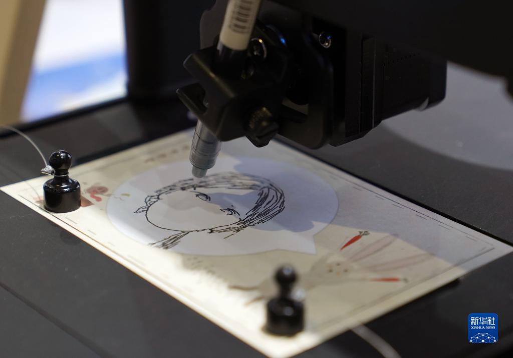 9月20日拍攝的北京大學(xué)展臺展示的妙繪畫(huà)像機器人。