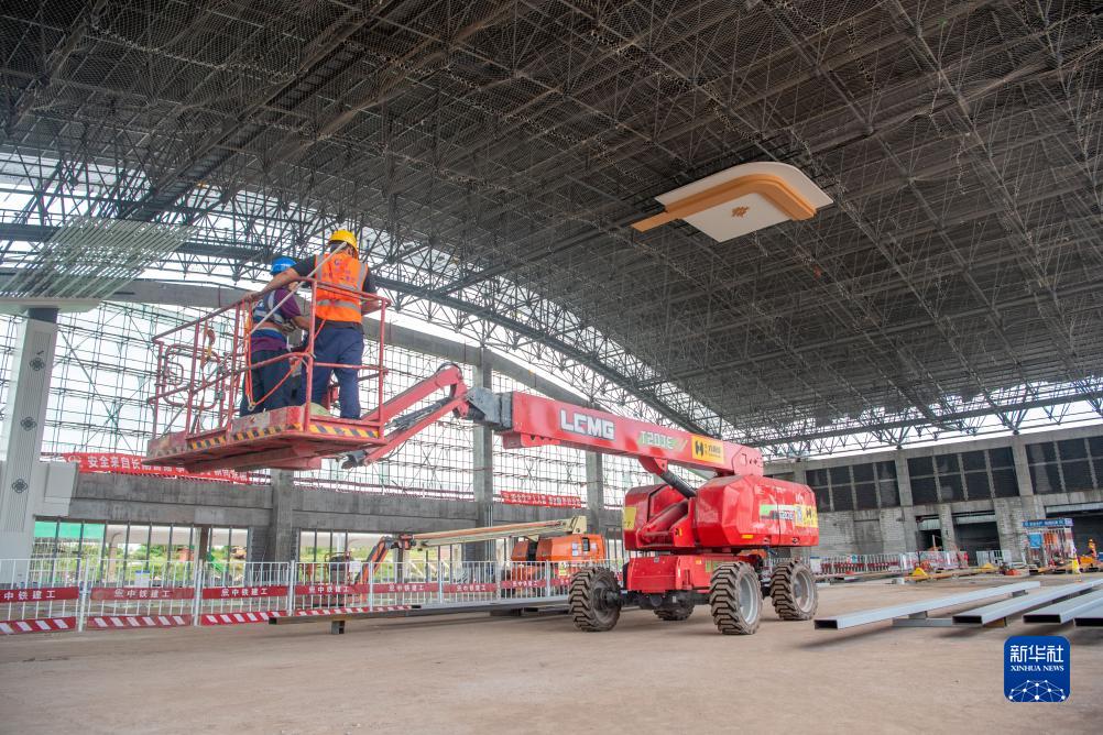 9月20日,工作人員在永川南站建設現場(chǎng)施工作業(yè)。