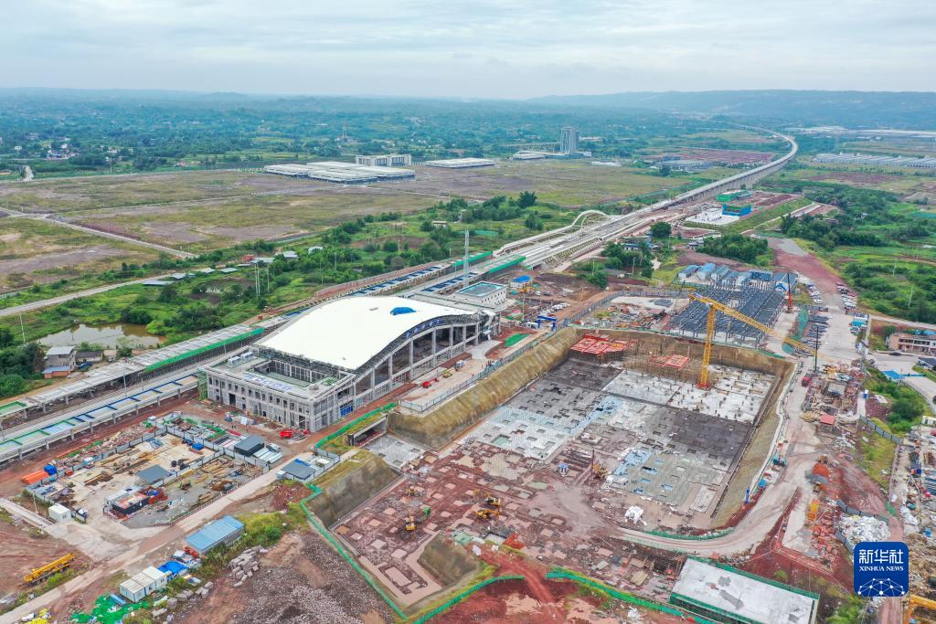這是9月20日拍攝的建設中的永川南站(無(wú)人機照片)。
