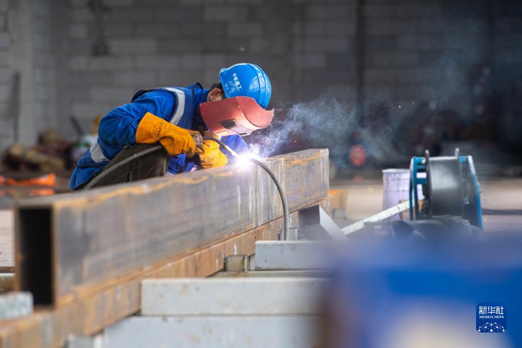 9月20日,工作人員在永川南站建設現場(chǎng)施工作業(yè)。