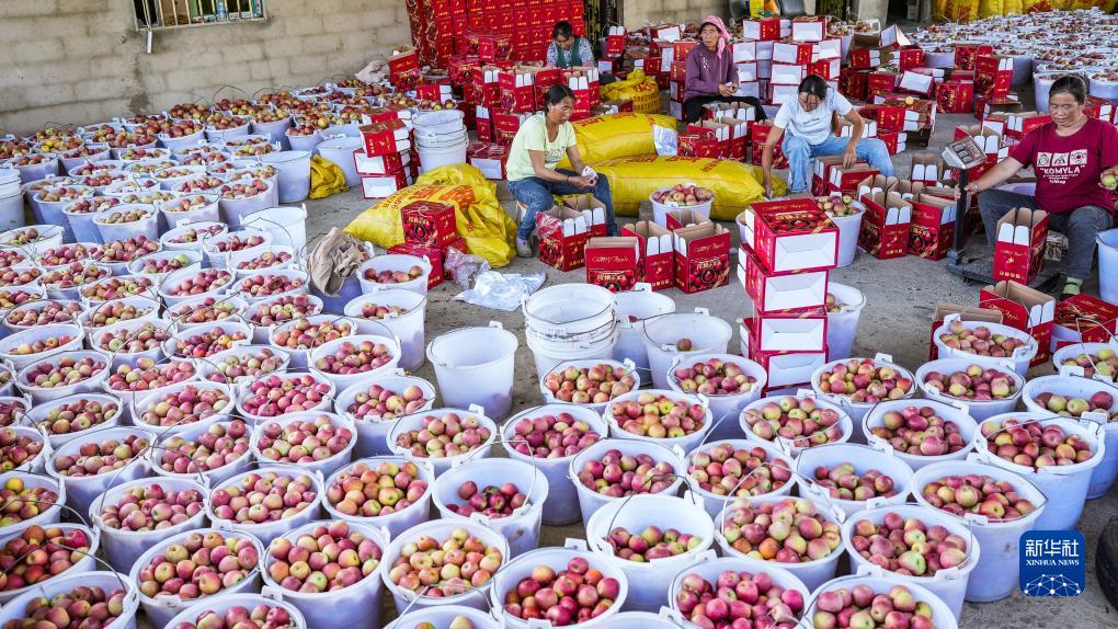 近日,貴州省畢節市威寧彝族回族苗族自治縣種植的21萬(wàn)畝高山蘋(píng)果陸續迎來(lái)收獲季,果農們加緊采摘、裝運,果園內外到處是繁忙的豐收景象。