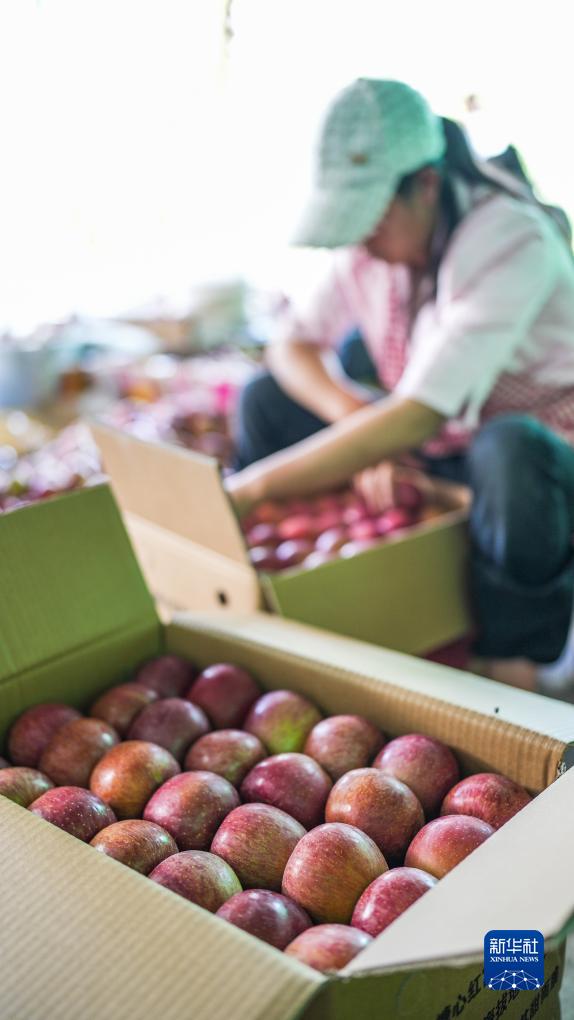 近日,貴州省畢節市威寧彝族回族苗族自治縣種植的21萬(wàn)畝高山蘋(píng)果陸續迎來(lái)收獲季,果農們加緊采摘、裝運,果園內外到處是繁忙的豐收景象。