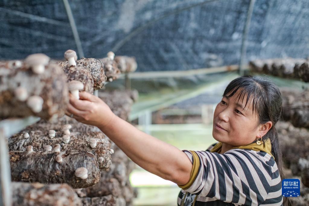 9月20日,在重慶市城口縣北屏鄉香菇出口示范基地,工人在采摘香菇。