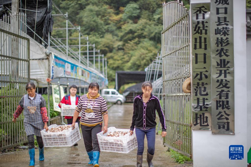 9月20日,在重慶市城口縣北屏鄉香菇出口示范基地,工人在搬運采摘的香菇。