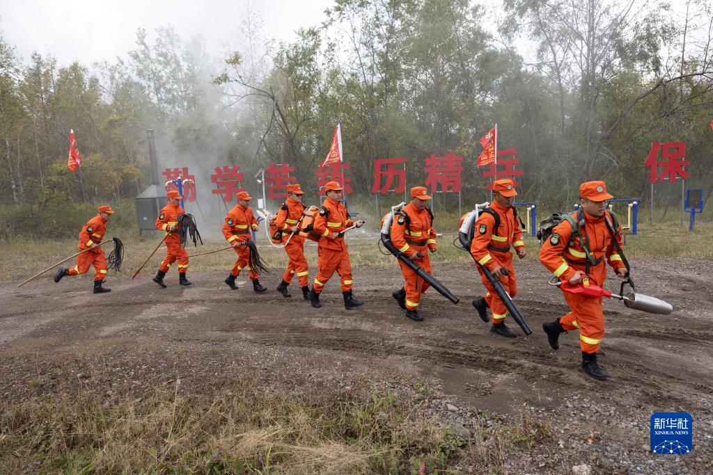 在長(cháng)白山國家級自然保護區王池保護管理站,風(fēng)災區專(zhuān)業(yè)撲火隊正在開(kāi)展森林火災應急處置、撲救技戰術(shù)、緊急避險等方面的訓練(9月17日攝)。