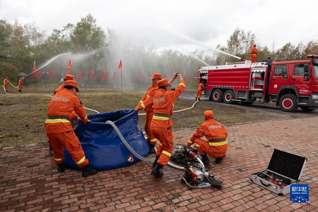 在長(cháng)白山國家級自然保護區王池保護管理站,風(fēng)災區專(zhuān)業(yè)撲火隊正在開(kāi)展森林火災應急處置、撲救技戰術(shù)、緊急避險等方面的訓練(9月17日攝)。