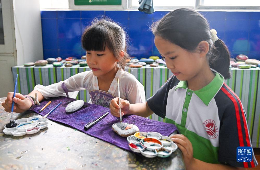 9月20日,重慶市忠縣烏楊小學(xué)卵石畫(huà)社團的學(xué)生在學(xué)習、體驗卵石畫(huà)創(chuàng )作。